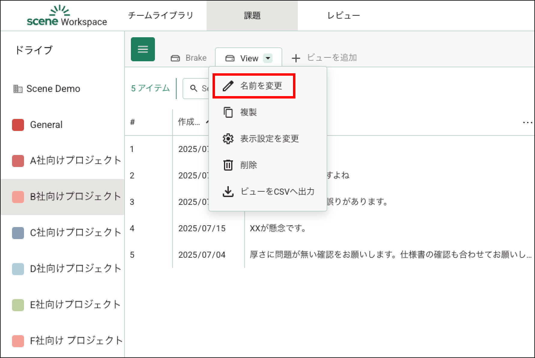 ビューの名前を変更する Yuwa Koresawa 2025年08月19日 03:33 更新 ビュー メニューを開き、[名前を変更] を選択します。新しい名前を入力し、[保存] をクリックします。 コメント 0件のコメント サインインしてコメントを残してください。
