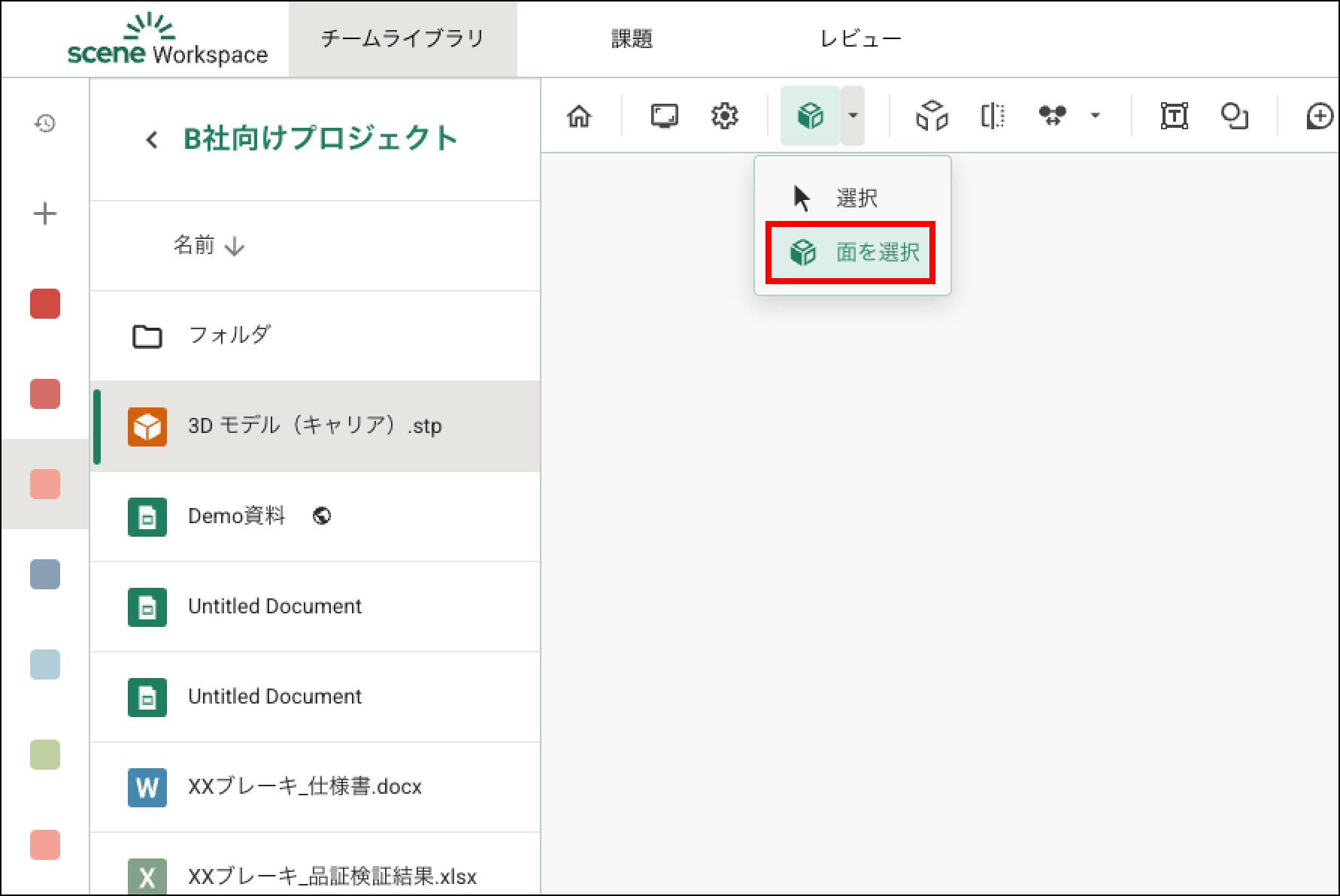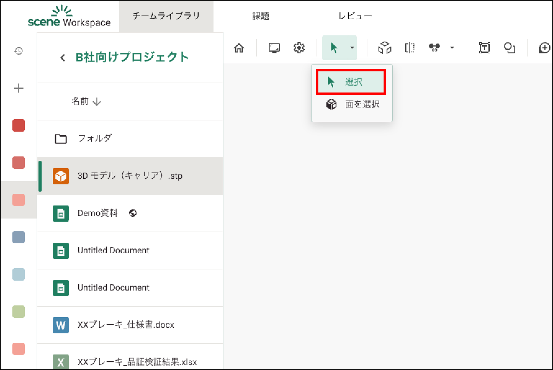 選択ツール Yuwa Koresawa 2025年08月19日 03:38 更新 ビューアーで選択 ツールを選択すると、任意の要素を選択できます。面を選択 ツールを選択すると、任意の面を選択できます。 コメント 0件のコメント サインインしてコメントを残してください。