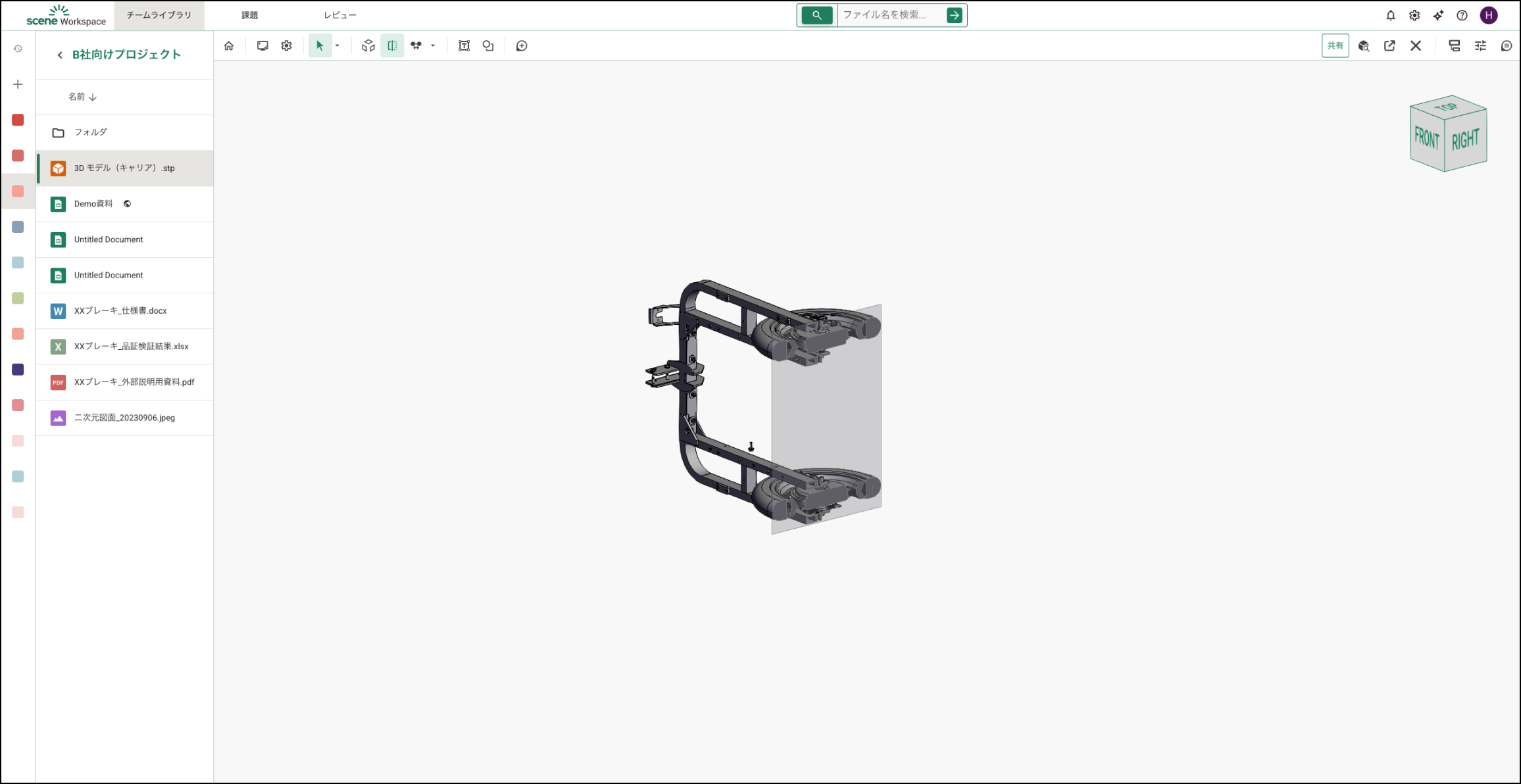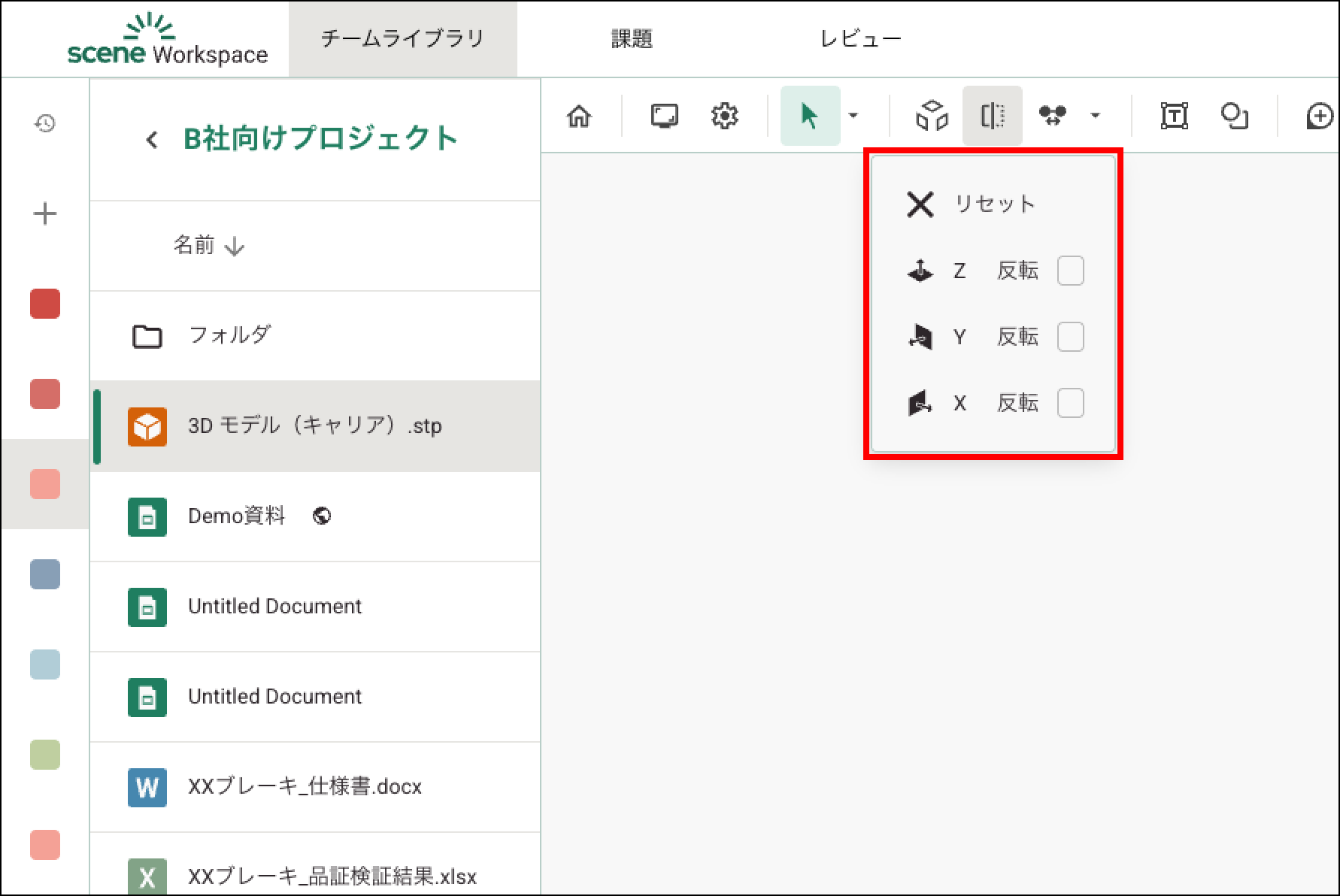 軸に沿う平面で設計を切断し、建物や機構の内部を確認できます。