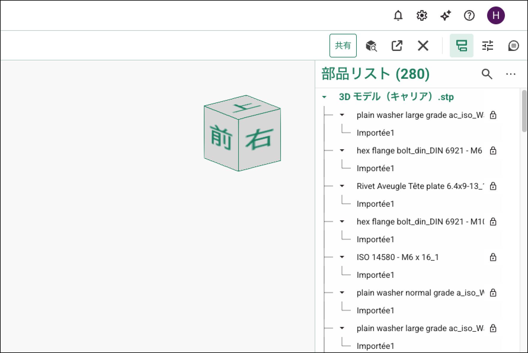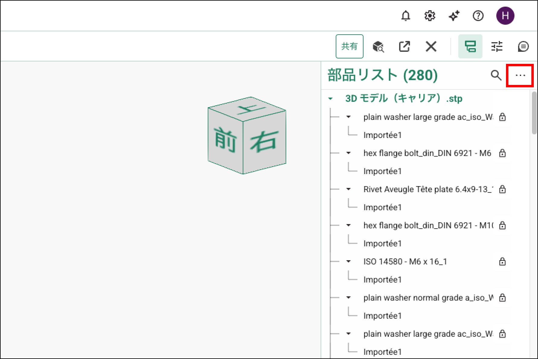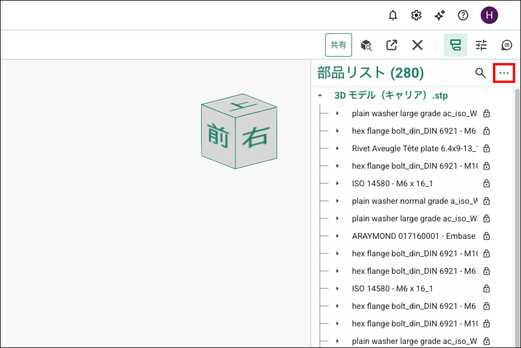 ツールバーの「パーツツリー」ボタンをクリックすると、パーツツリーを表示できます。