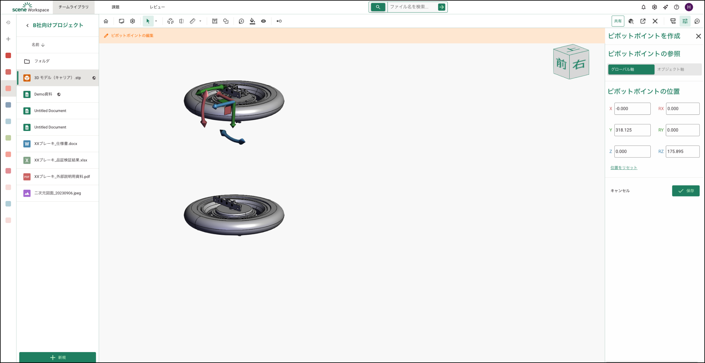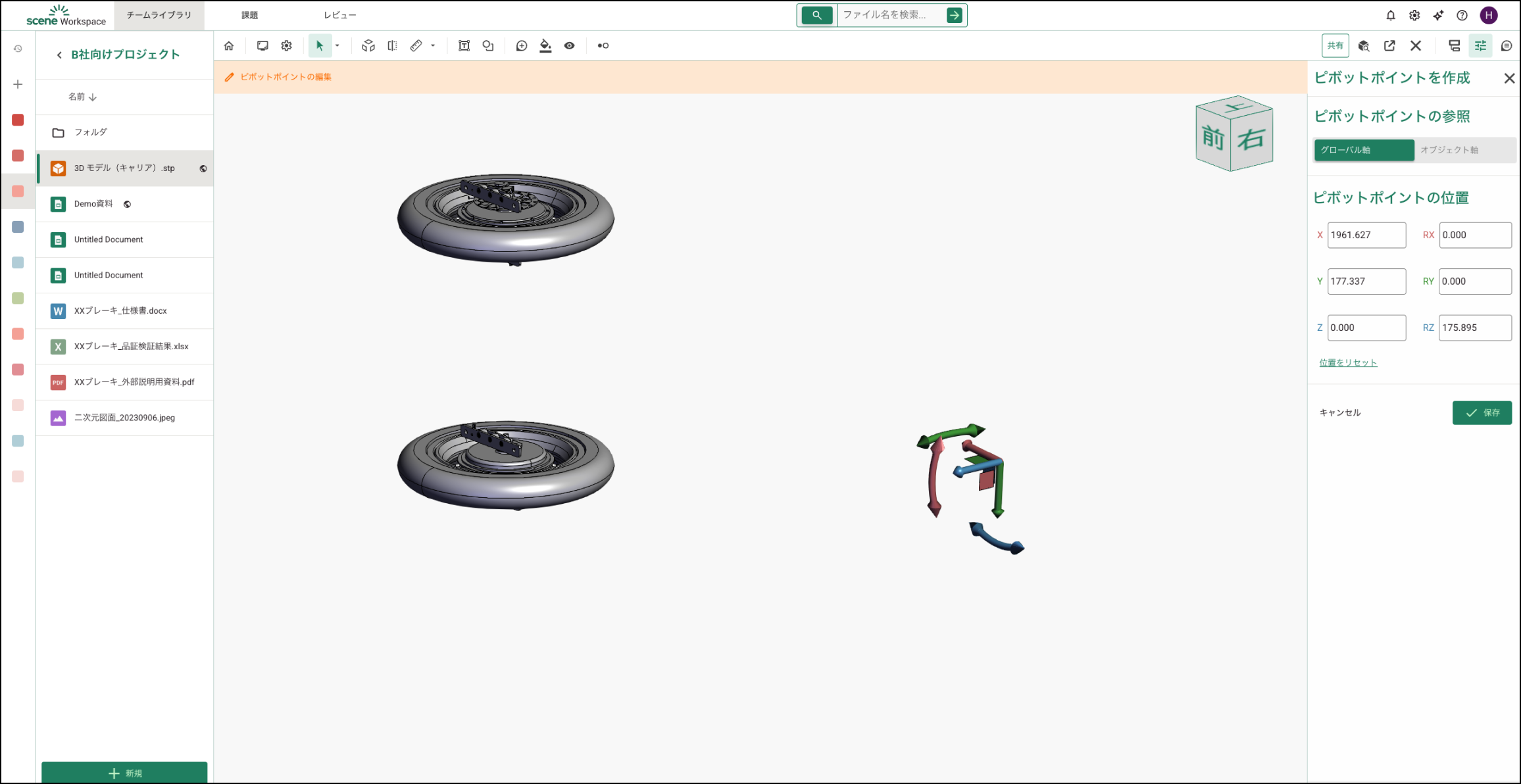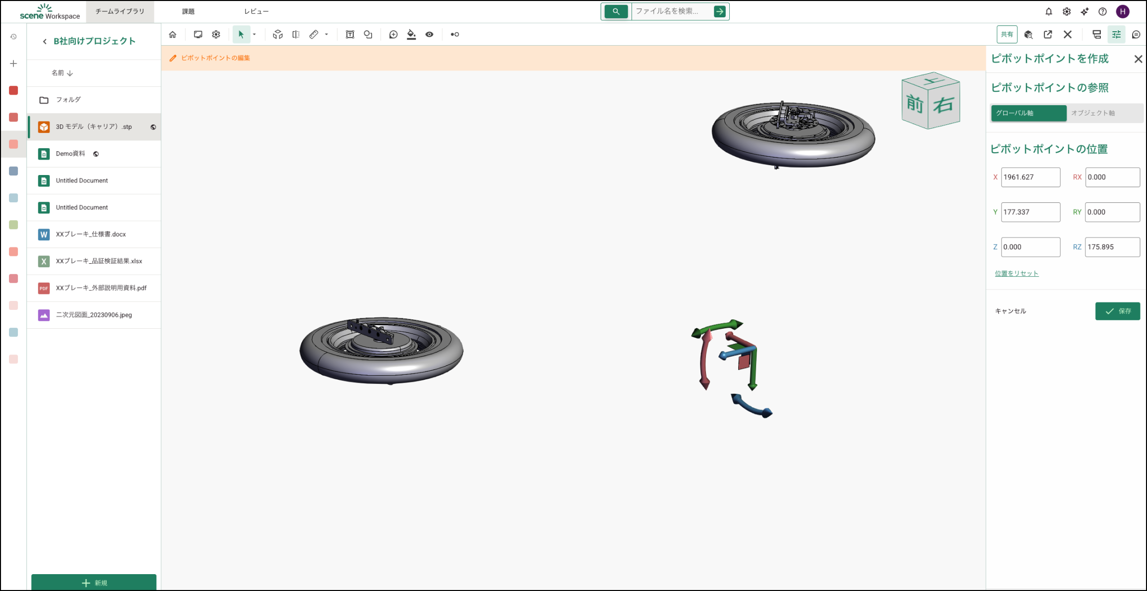 保存すると、そのパーツのギズモは新しく作成したギズモに置き換わり、以降の操作はそのギズモ基準になります。