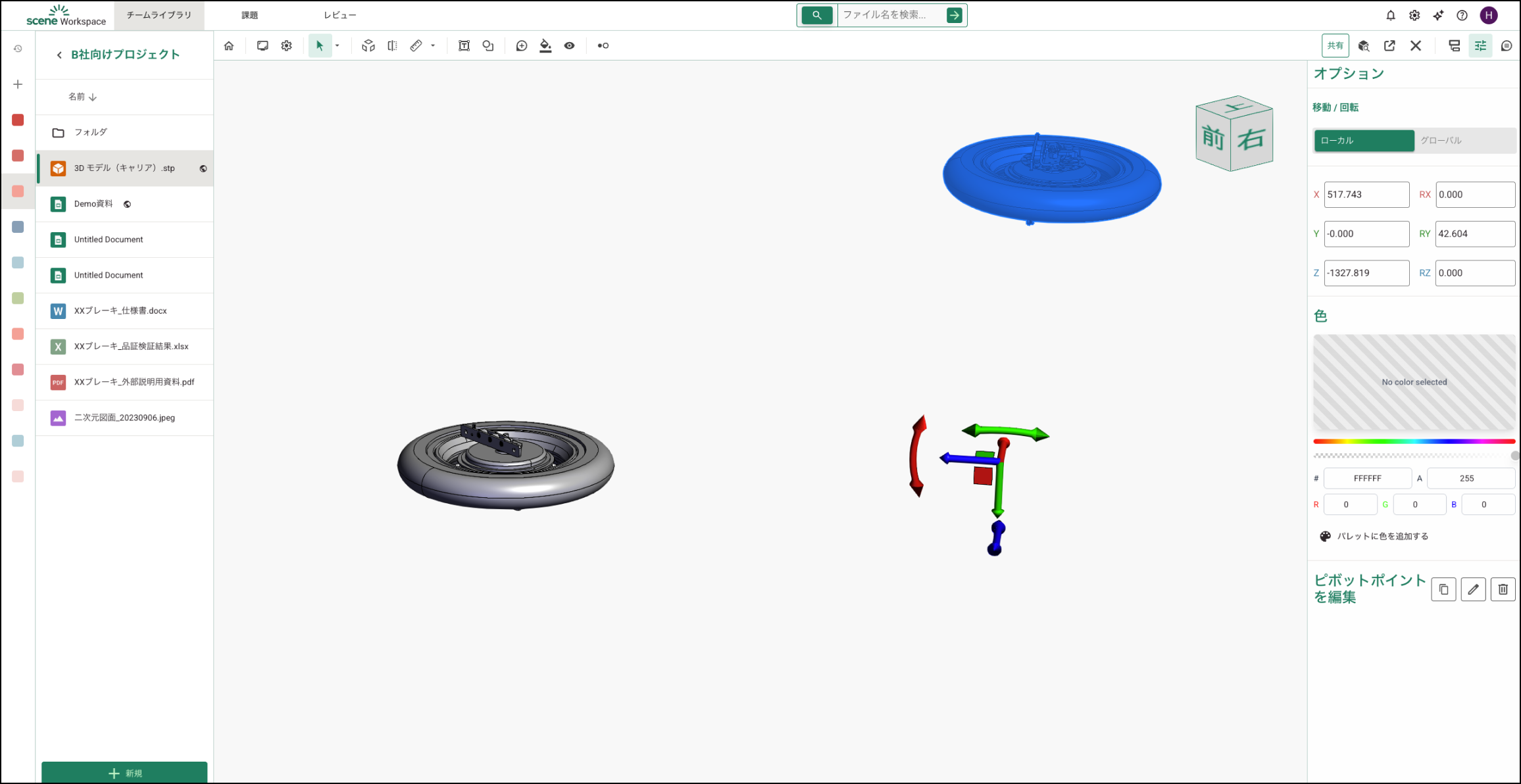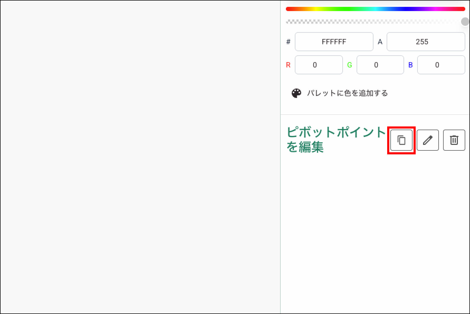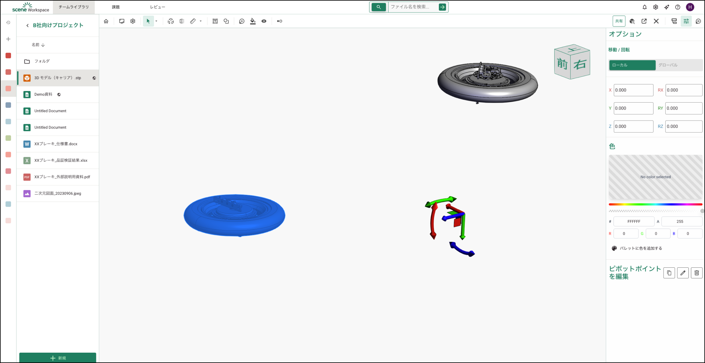 サイドメニューの「オプション」でカスタム ピボットポイントを作成し、選択したパーツをそのポイント基準で移動・回転できます。