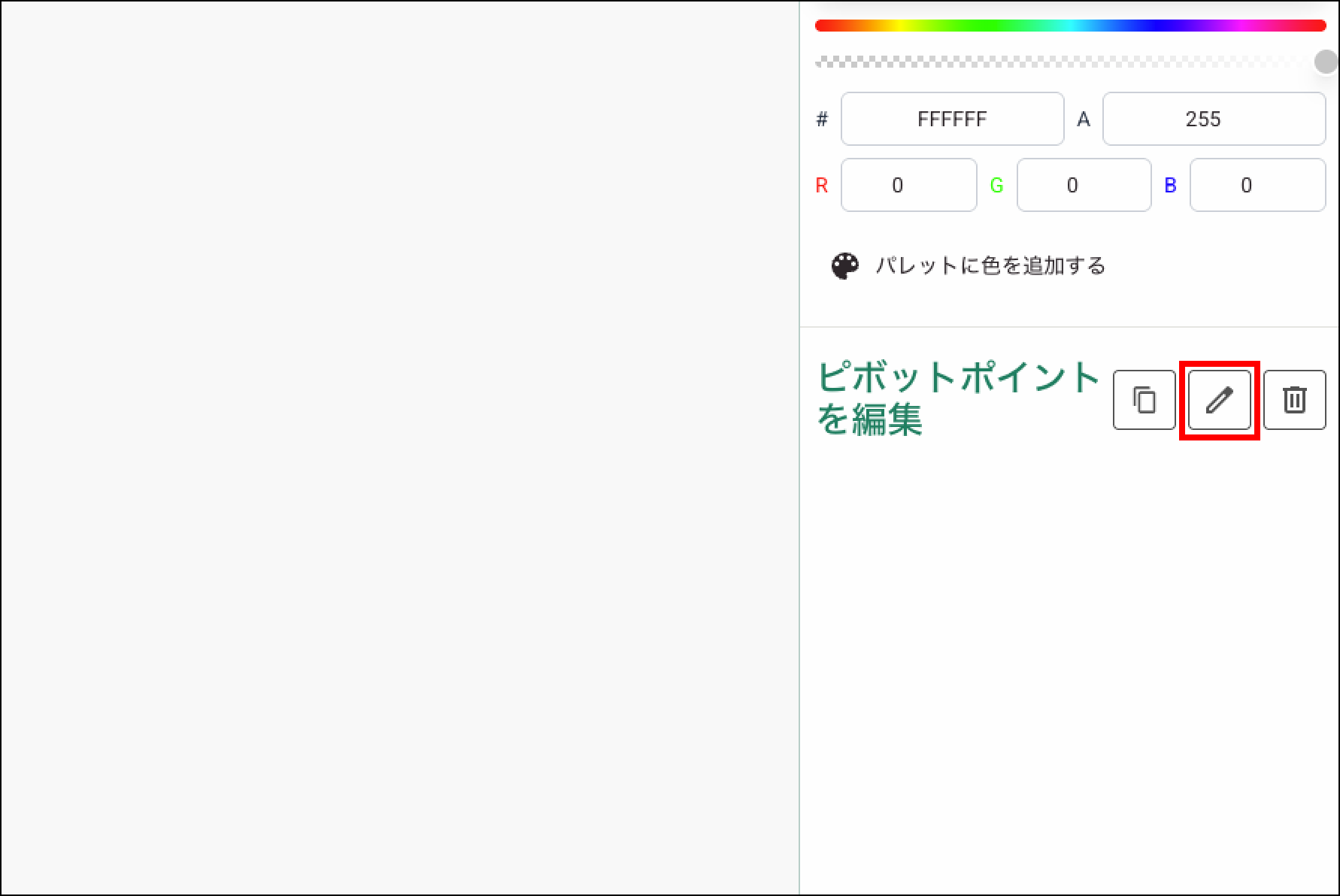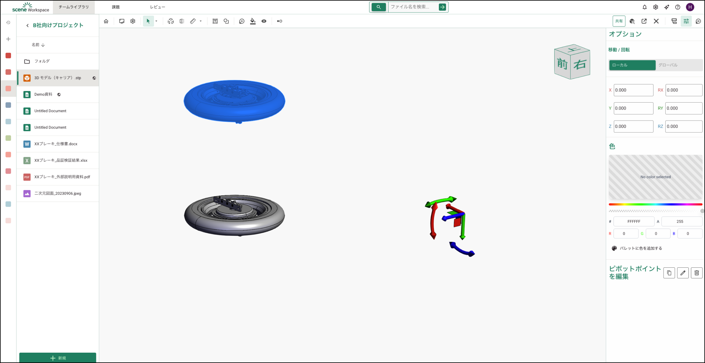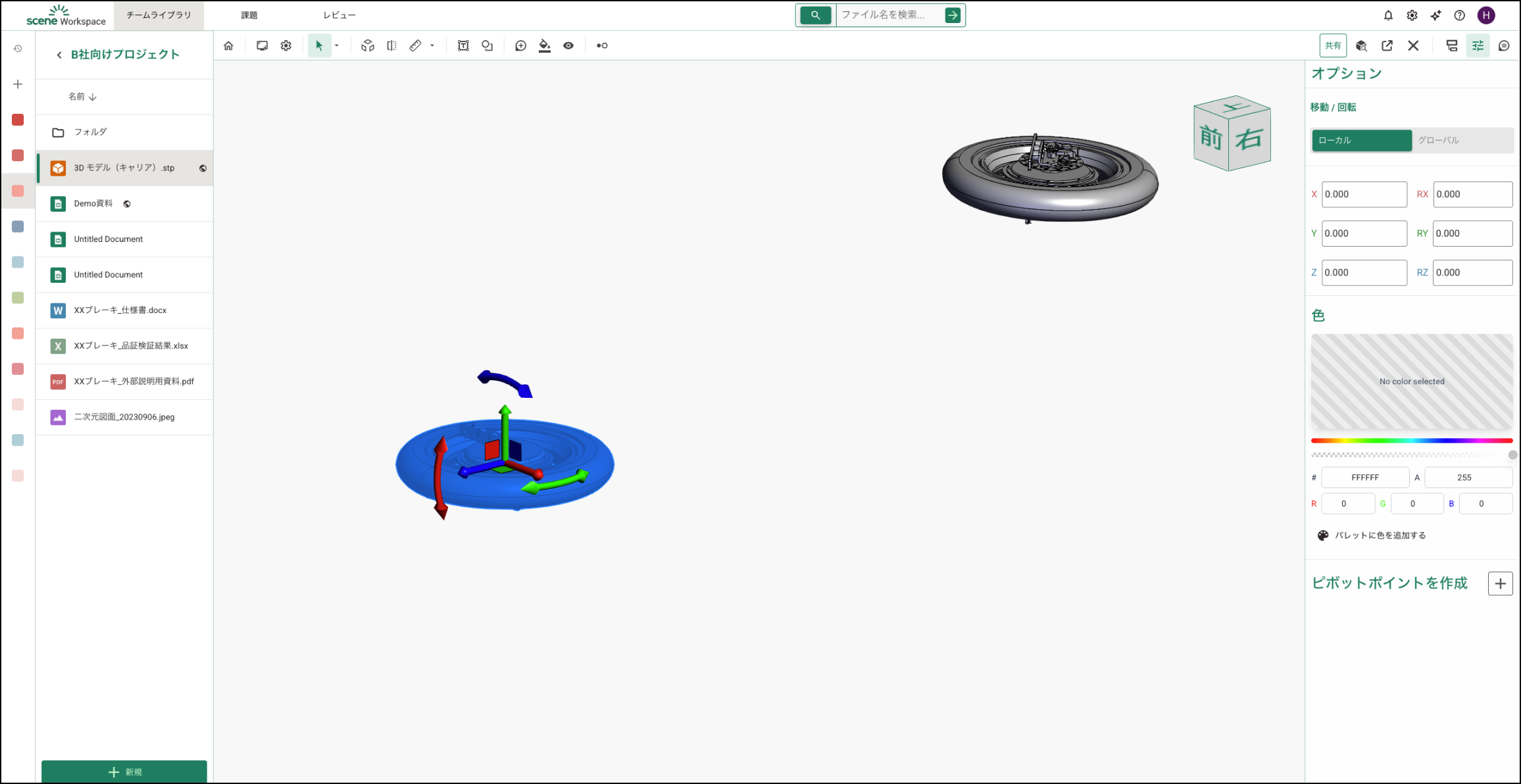 サイドメニューの「オプション」でカスタム ピボットポイントを作成し、選択したパーツをそのポイント基準で移動・回転できます。