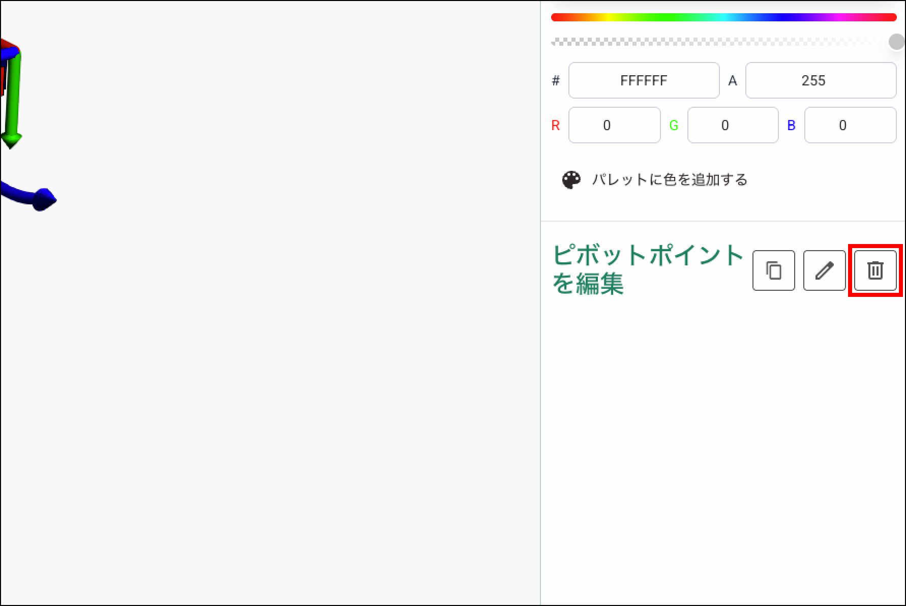 「削除」ボタンをクリックすると、ピボットポイントを削除してパーツのギズモを初期状態に戻せます。