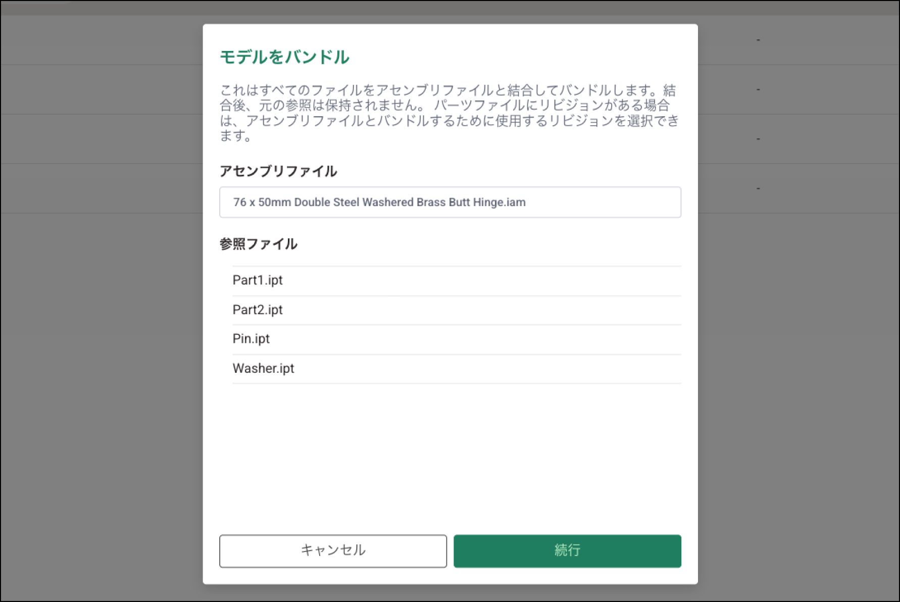 アセンブリ ファイルをアップロードすると、通常と異なるアイコンで表示され、アセンブリに属していることを示す「バンドル」バッジが付きます。
