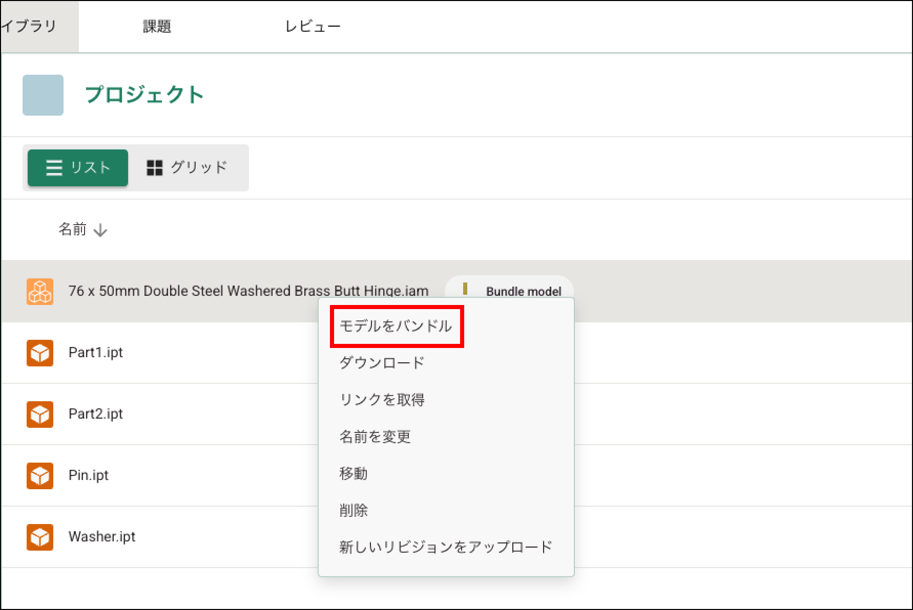 ファイルをバンドルするには、右クリックして「モデルをバンドル」を選択します。
