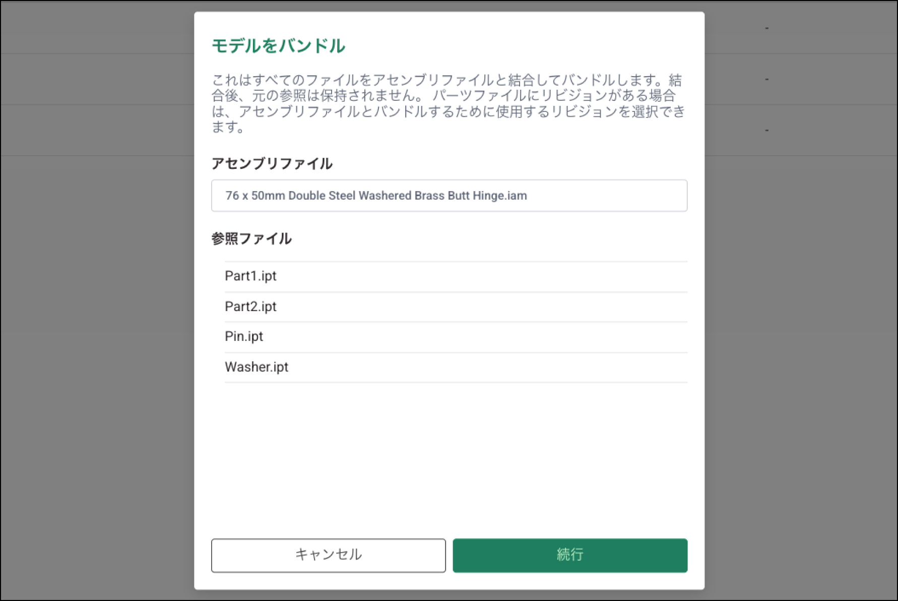 バンドル後は、モデルを開いても参照不足の警告は表示されません。
